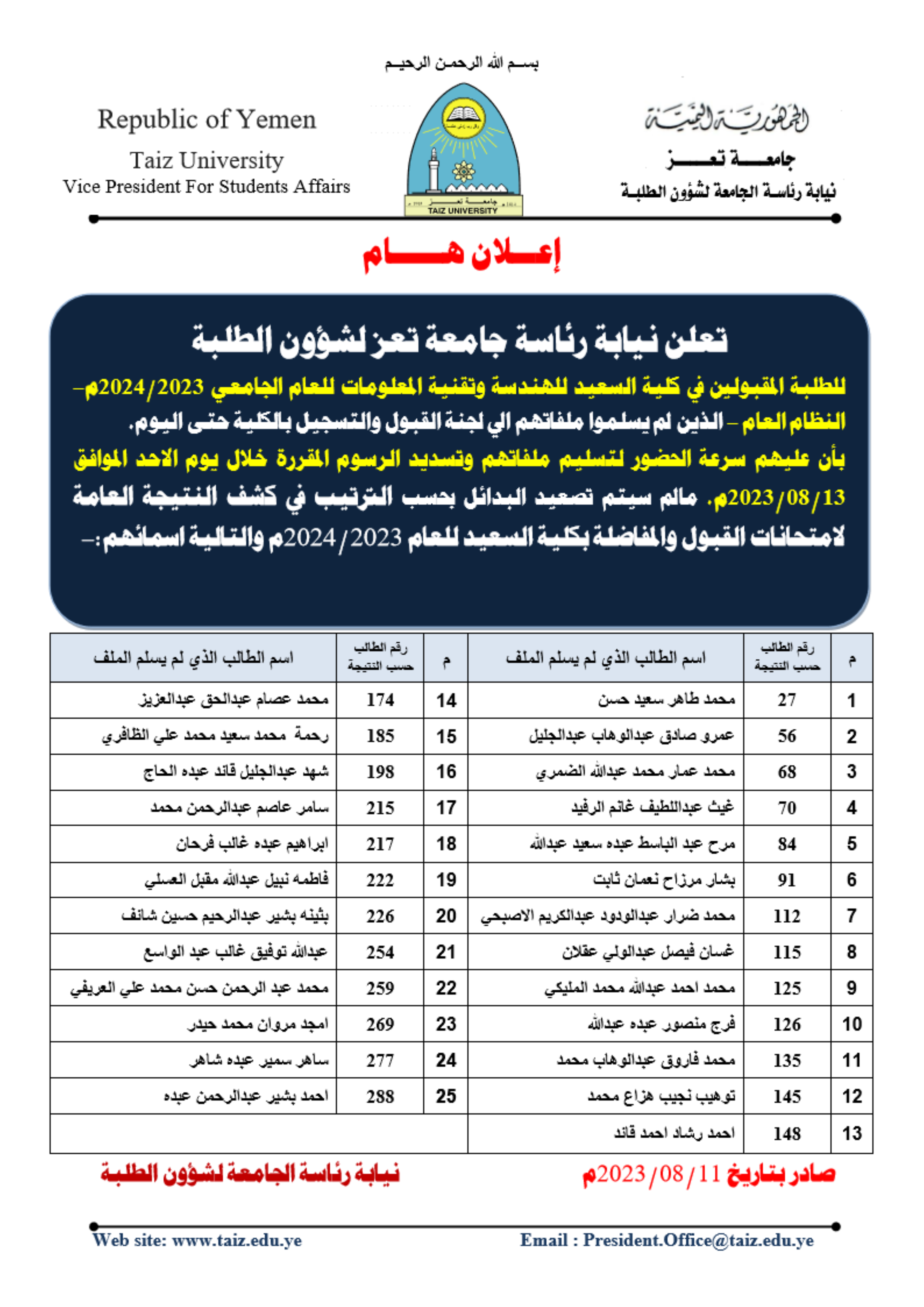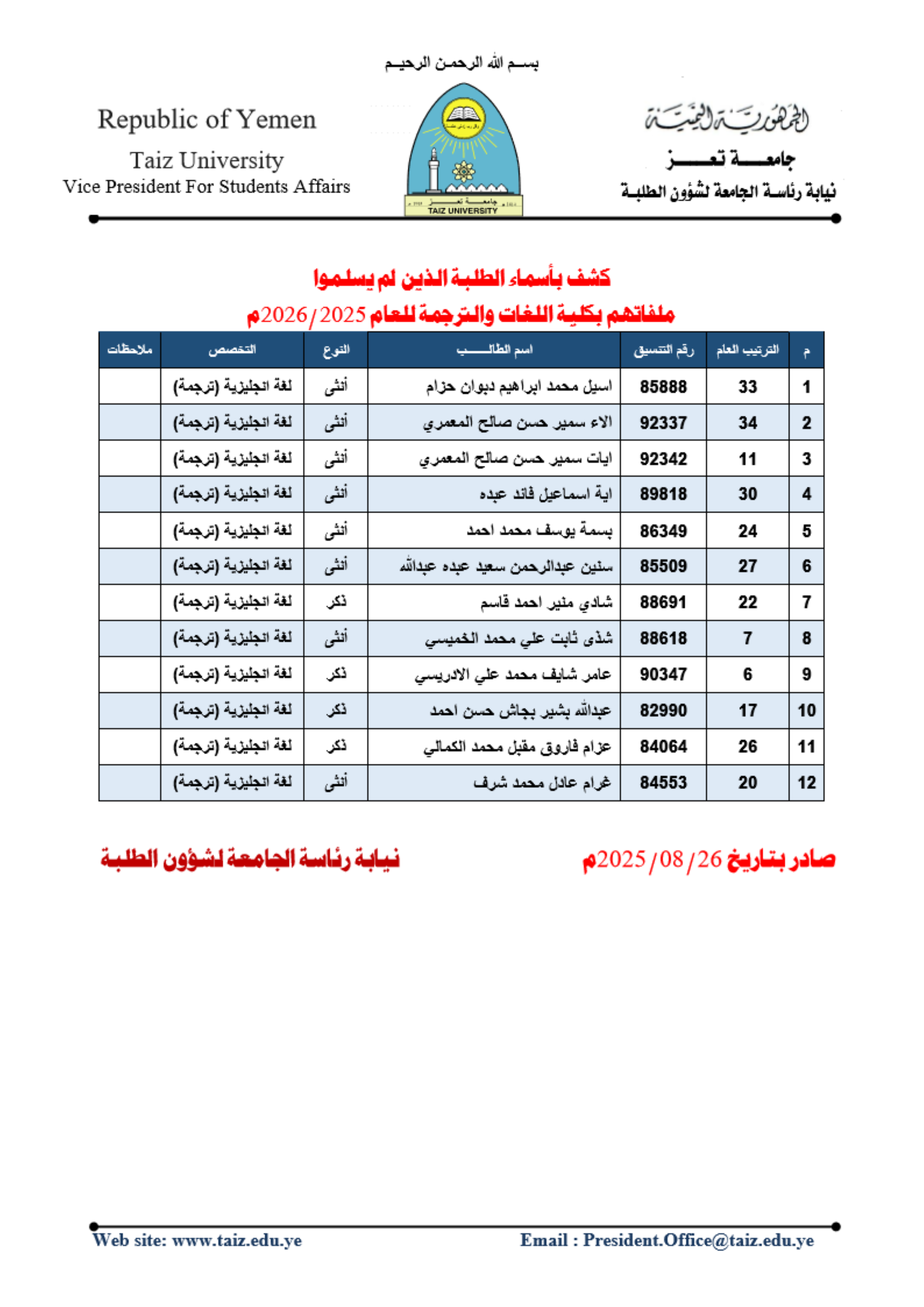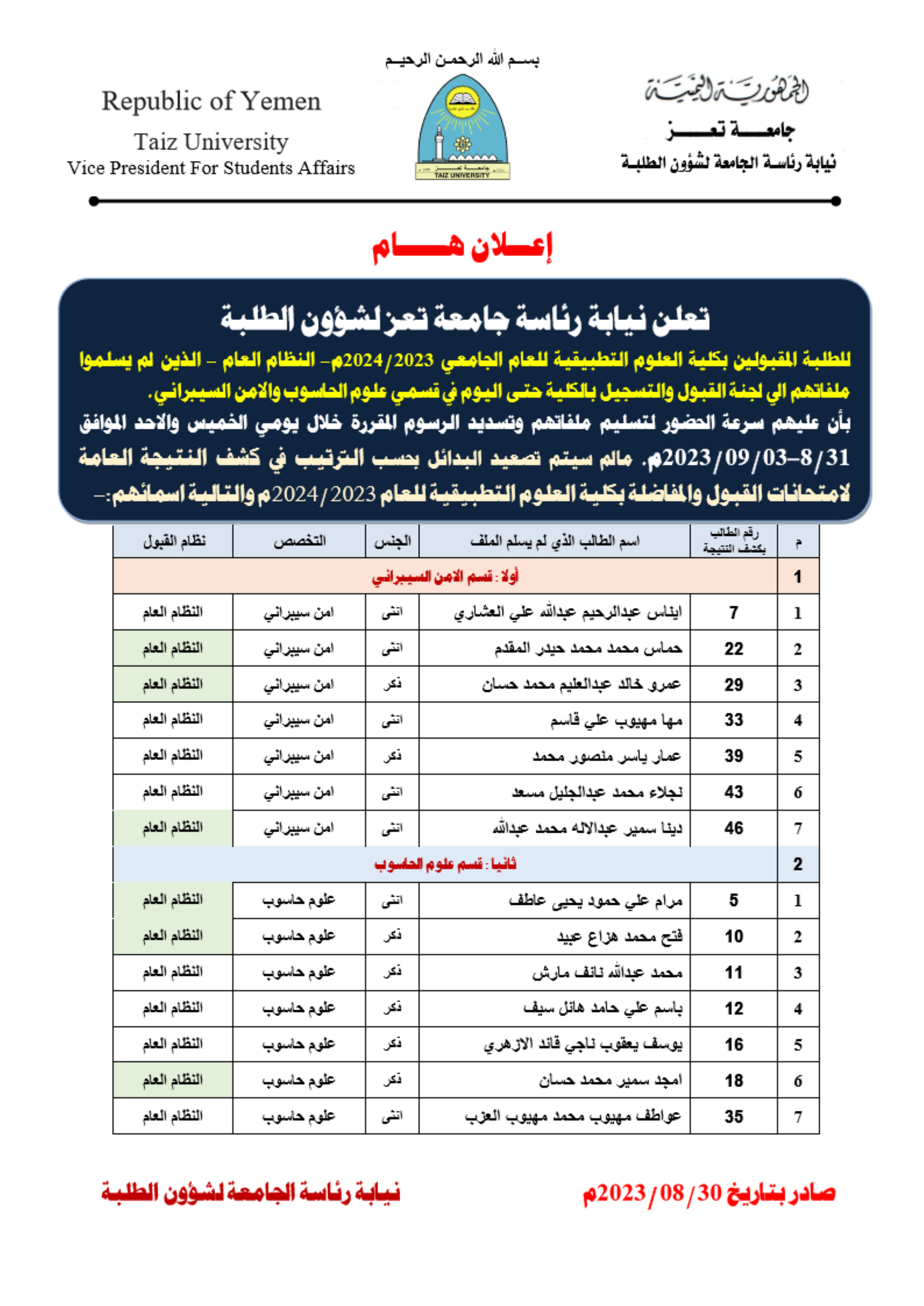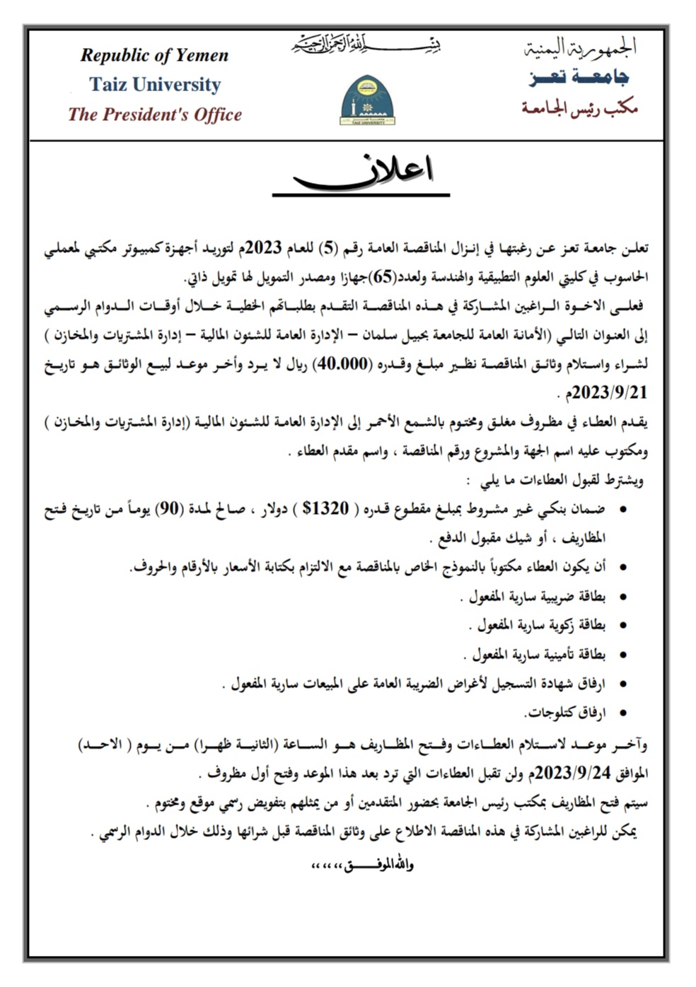 رخصة جامعة تعز لقيادة الحاسوب